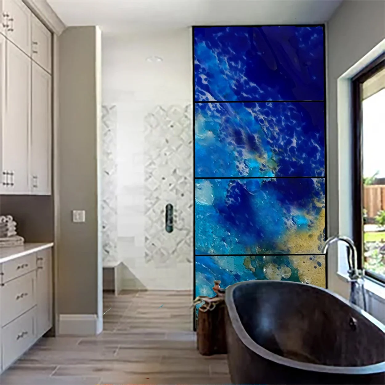 Each piece is a one-of-a-kind fused glass artwork, designed to interact with light and space. Custom commissions for residential and architectural projects are available.