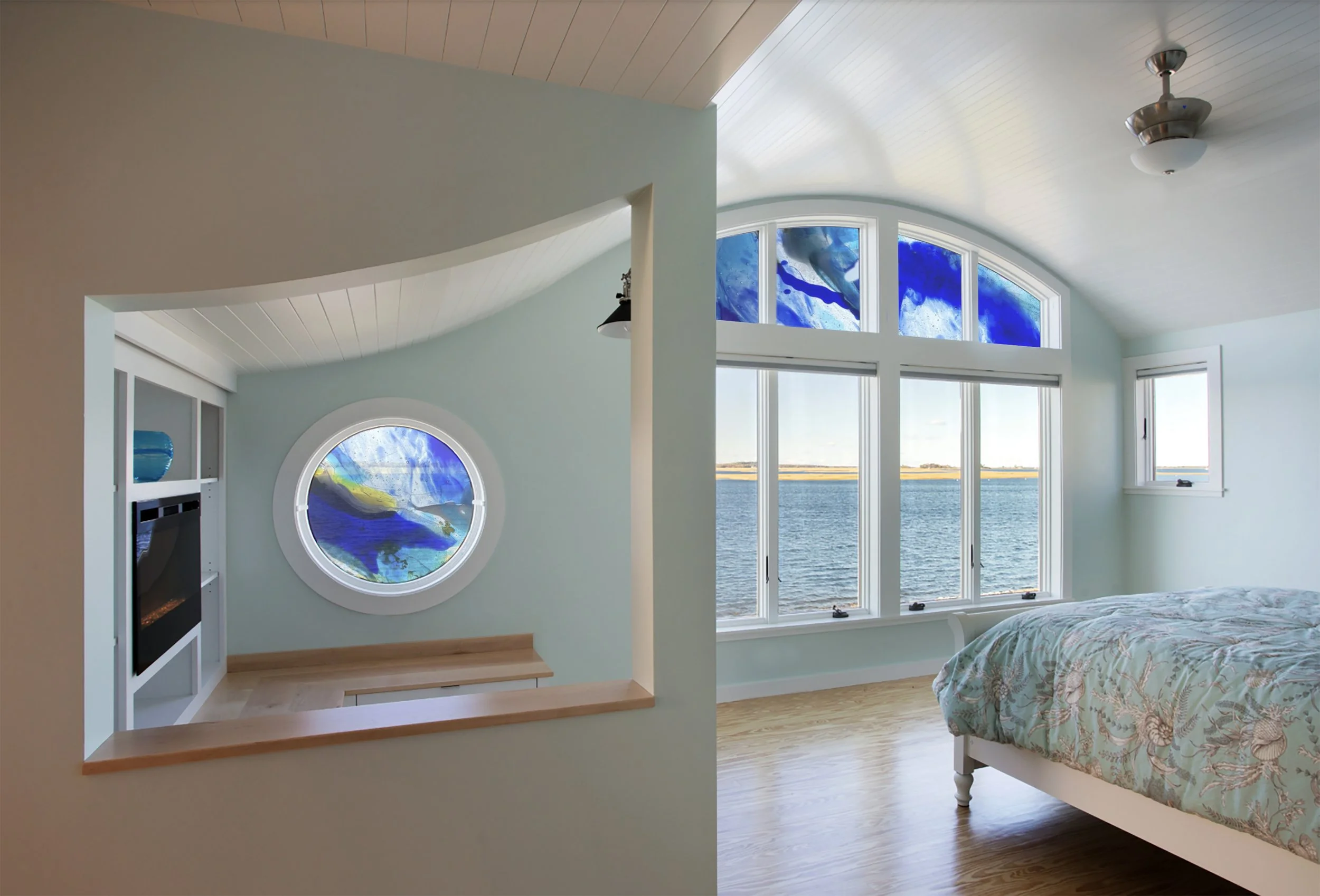 Glass integrated into space and structure. These bespoke architectural works use light, color, and movement to transform windows, openings, and interiors into immersive experiences, created in collaboration with architects and designers.